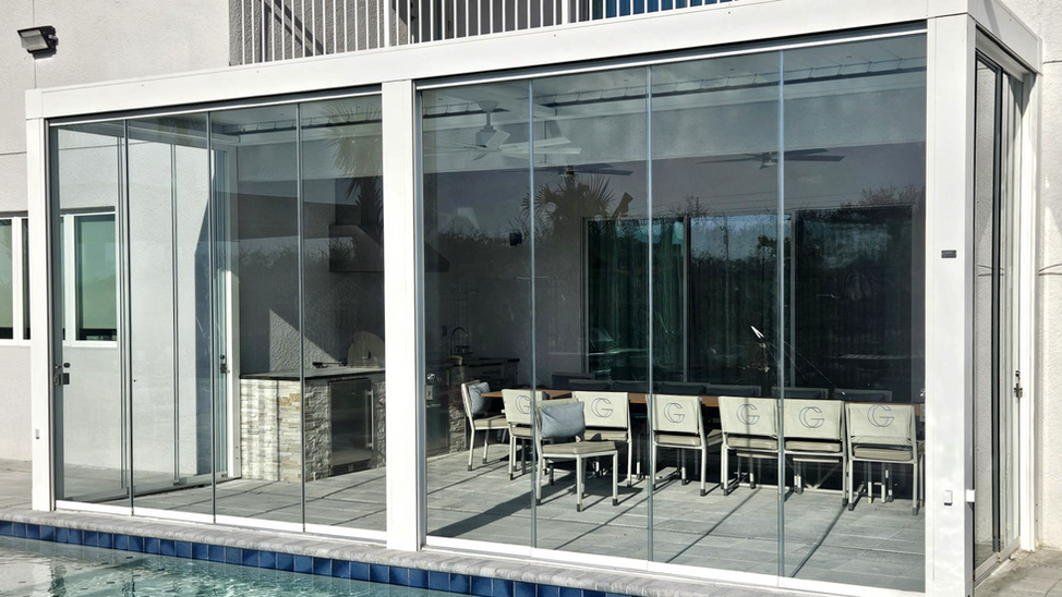 Designed for those who love 360-degree freedom: blades compact creating a window to the sky. Skyview Premium is the fully-equipped version of the Skyview series with vertical Zip Shades closures and Slide Glass sliding glass windows.