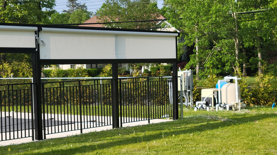 Shading when you want it and privacy when you need it, the selection of the pool shades system gives you the peach of mind, to have the view of the Pool area when you want it and the privacy when you need it, a selection of privacy fabrics are available, and a variety of colors for the metals based on your choice, these dividers are motorized, that can be controlled to be raised and lowered based on your preference, with a system that goes up to 19' in the width and 10' high, this is the perfect choice for dividing and separating the pool from the rest of your backyard.